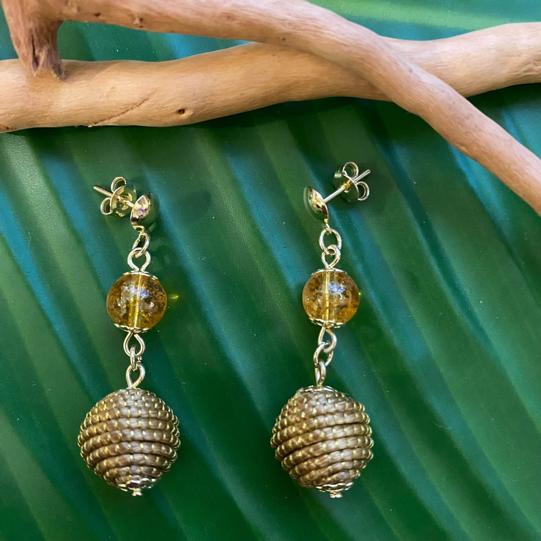 Boucles d'oreilles Capim Dourado et pierre naturelle