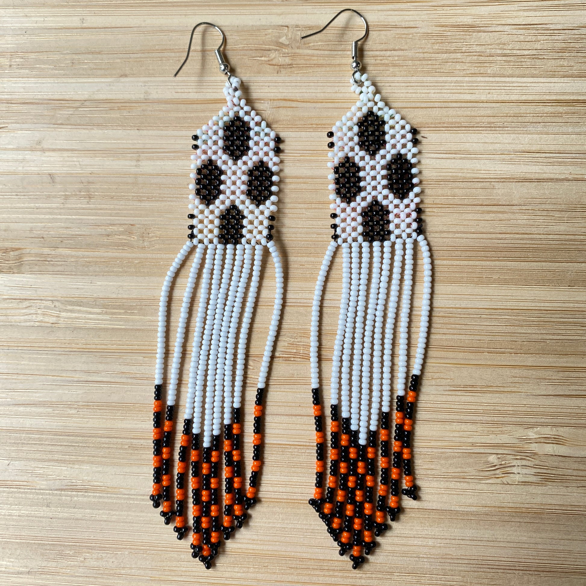 Portez ces boucles d’oreilles avec des vêtements unis dans des tons neutres comme le noir, le beige ou le blanc cassé pour créer un contraste frappant. L'association du blanc lumineux, du noir profond et de la pointe orange chaleureux se détachera avec subtilité mais impact visuel.