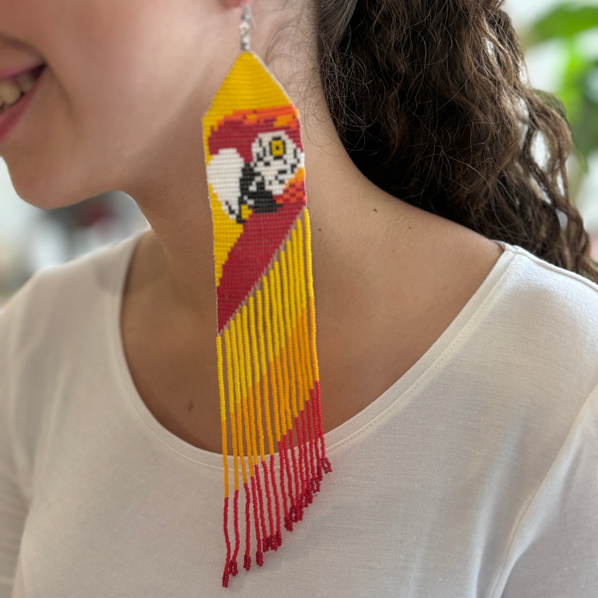 Ces boucles d'oreilles aux couleurs vives et au motif d'ara apportent une touche audacieuse et colorée à votre tenue.
