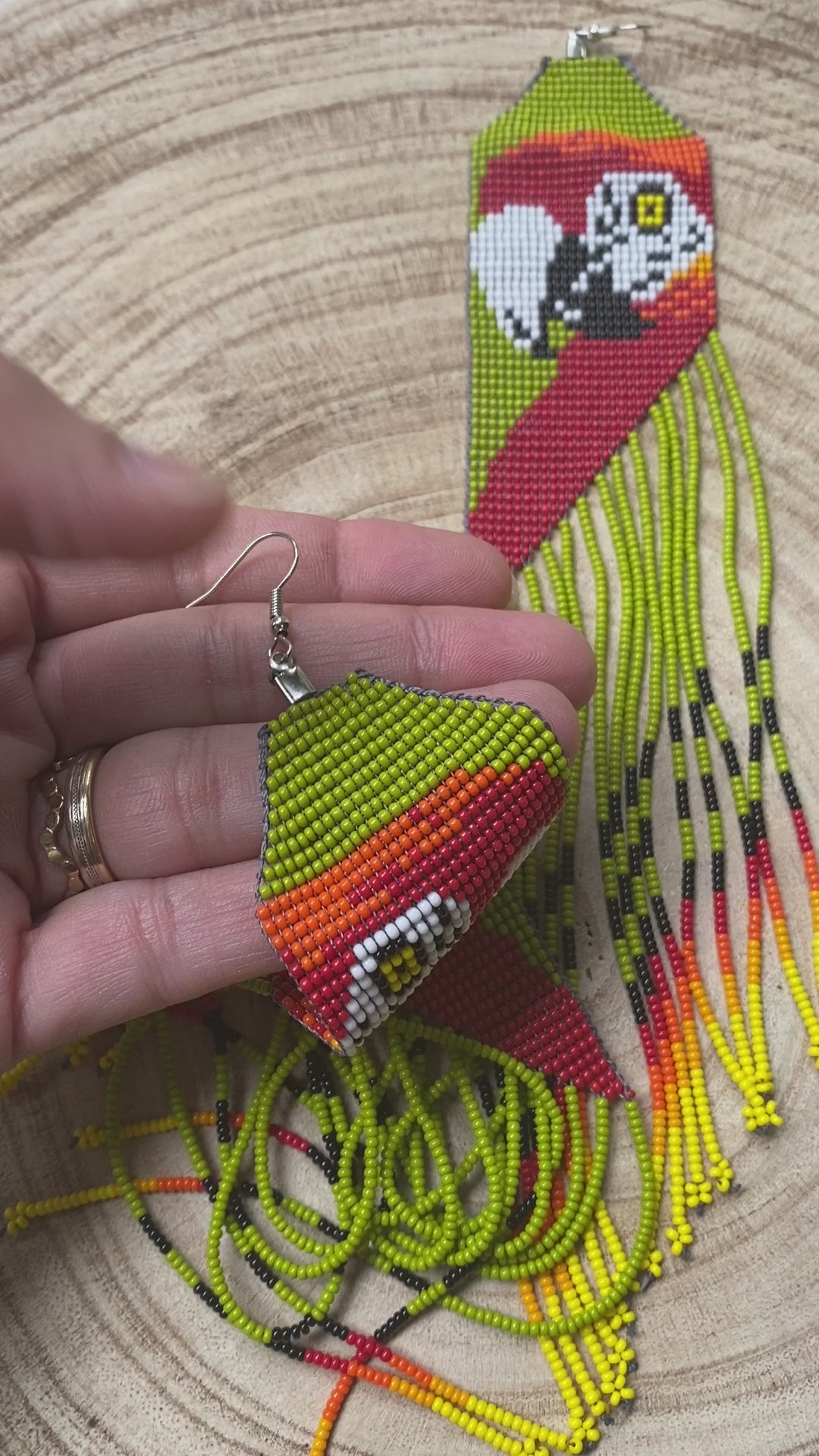 Les couleurs vives — rouge intense et vert profond — sont mises en lumière lorsqu’elles sont portées sur une base sobre. Pensez à un haut blanc, noir ou beige neutre pour que le motif d’ara se détache avec éclat, sans rivaliser avec le reste de la tenue.