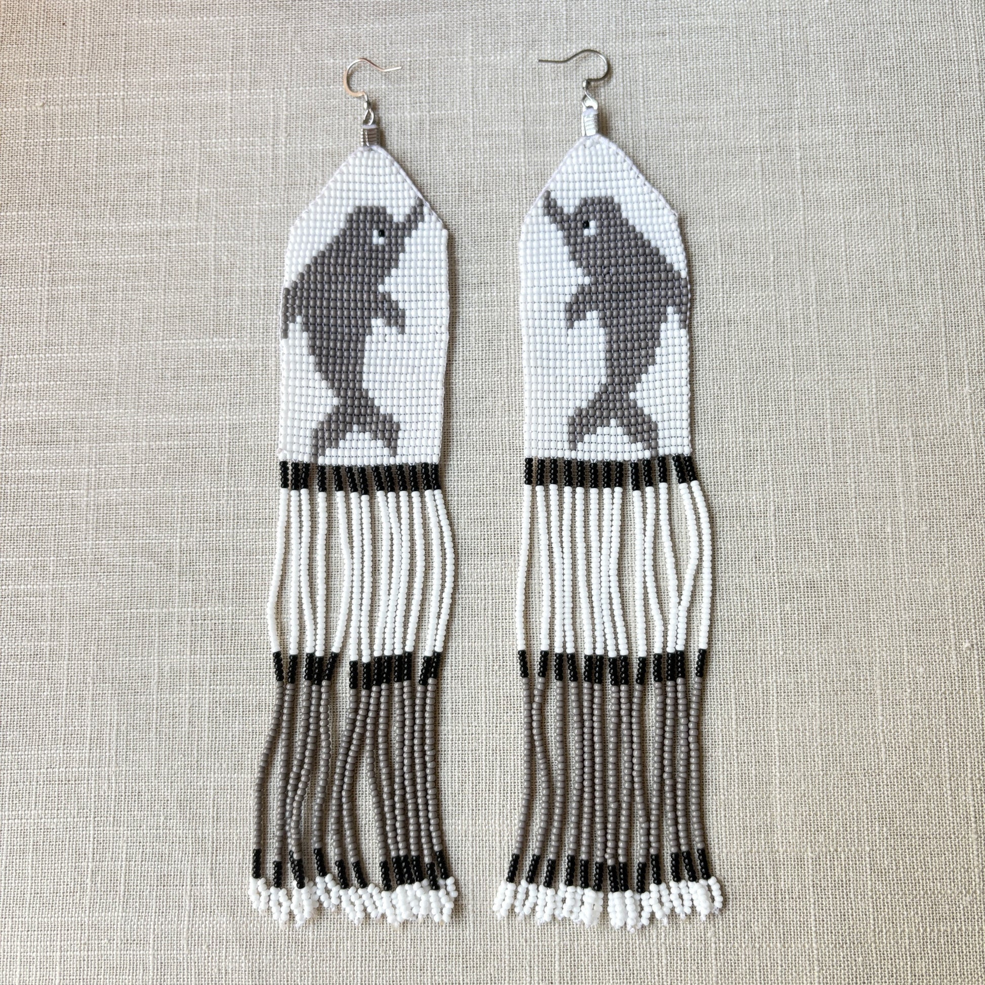Ces boucles d’oreilles en perles de verre s’inspirent de la faune amazonienne : un dauphin gris stylisé, symbole d’élégance et de douceur. Leur design travaillé apporte une touche moderne tout en évoquant la richesse culturelle du Pará. Parfaites pour sublimer un look du quotidien comme une tenue plus habillée.