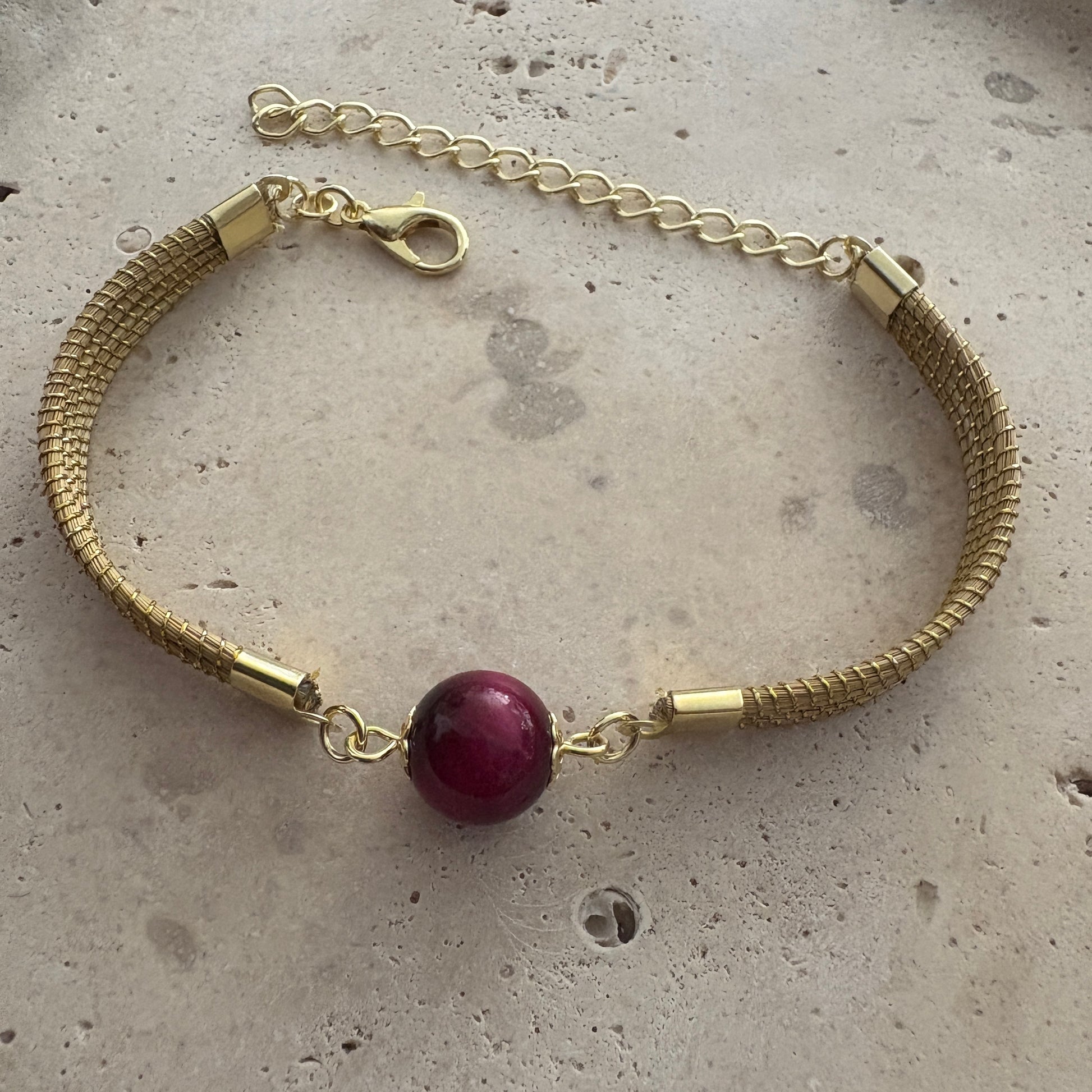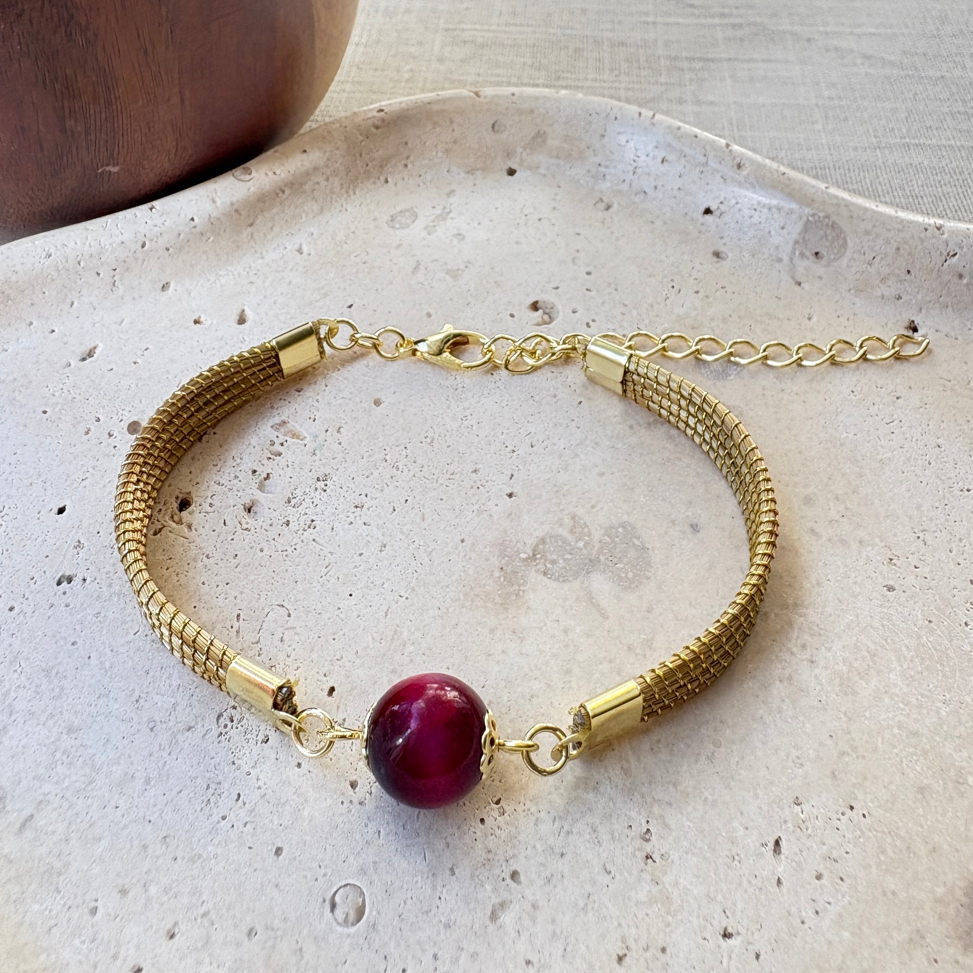 Bracelet Capim Dourado - pierre naturelle Oeil de tigre rubis