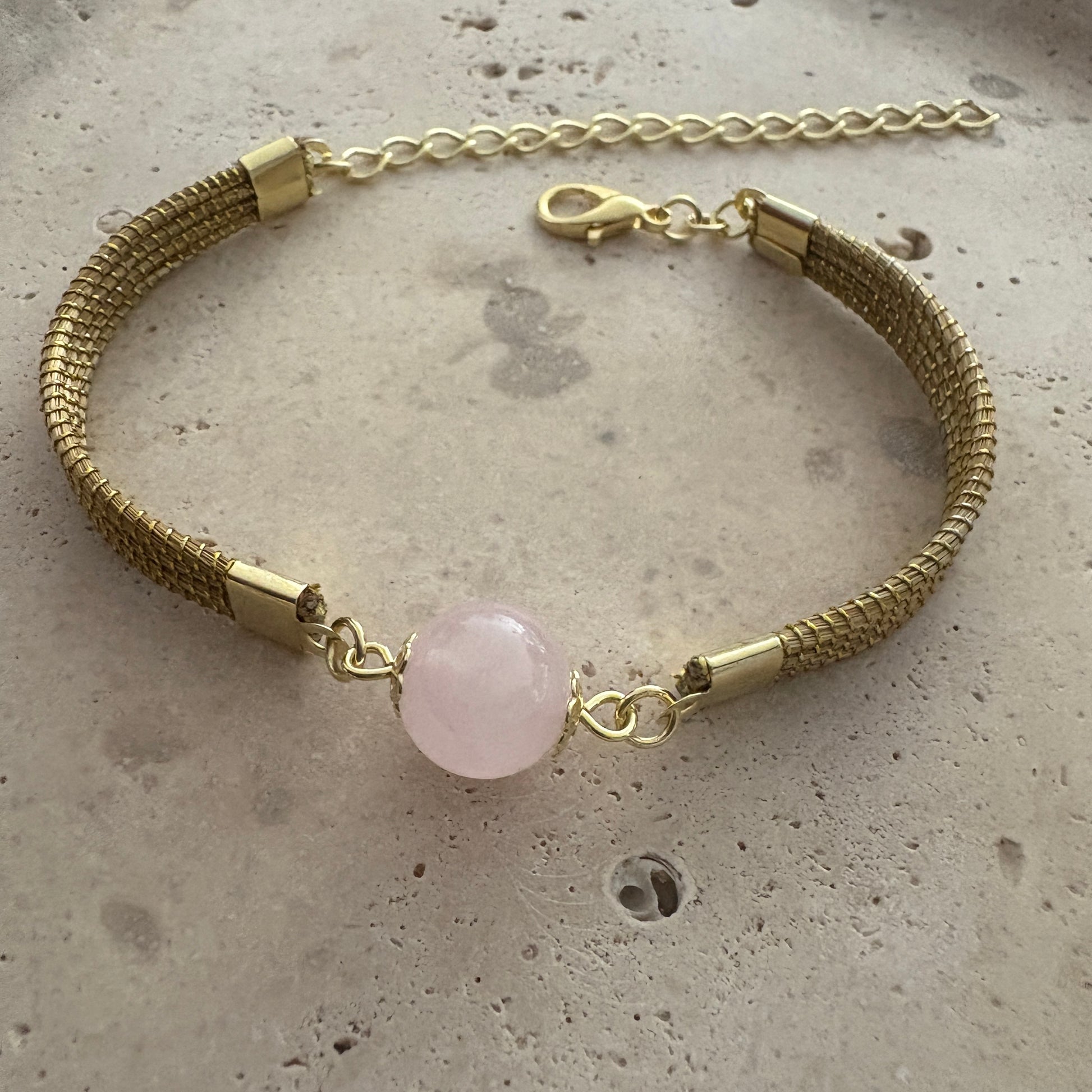 Bracelet Capim Dourado - pierre naturelle Quartz rose