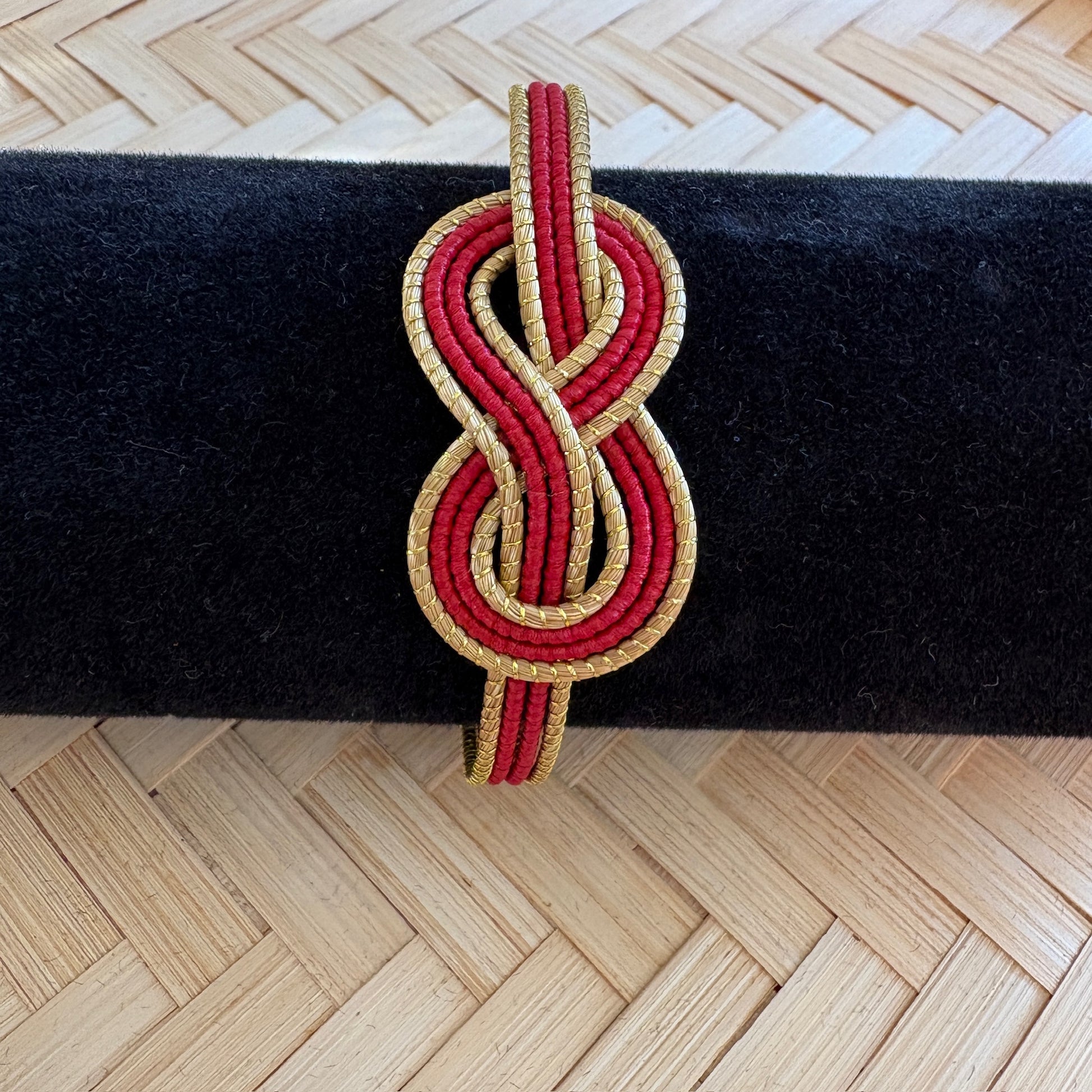 Bracelet Capim Dourado tressé en huit - fibre buriti rouge