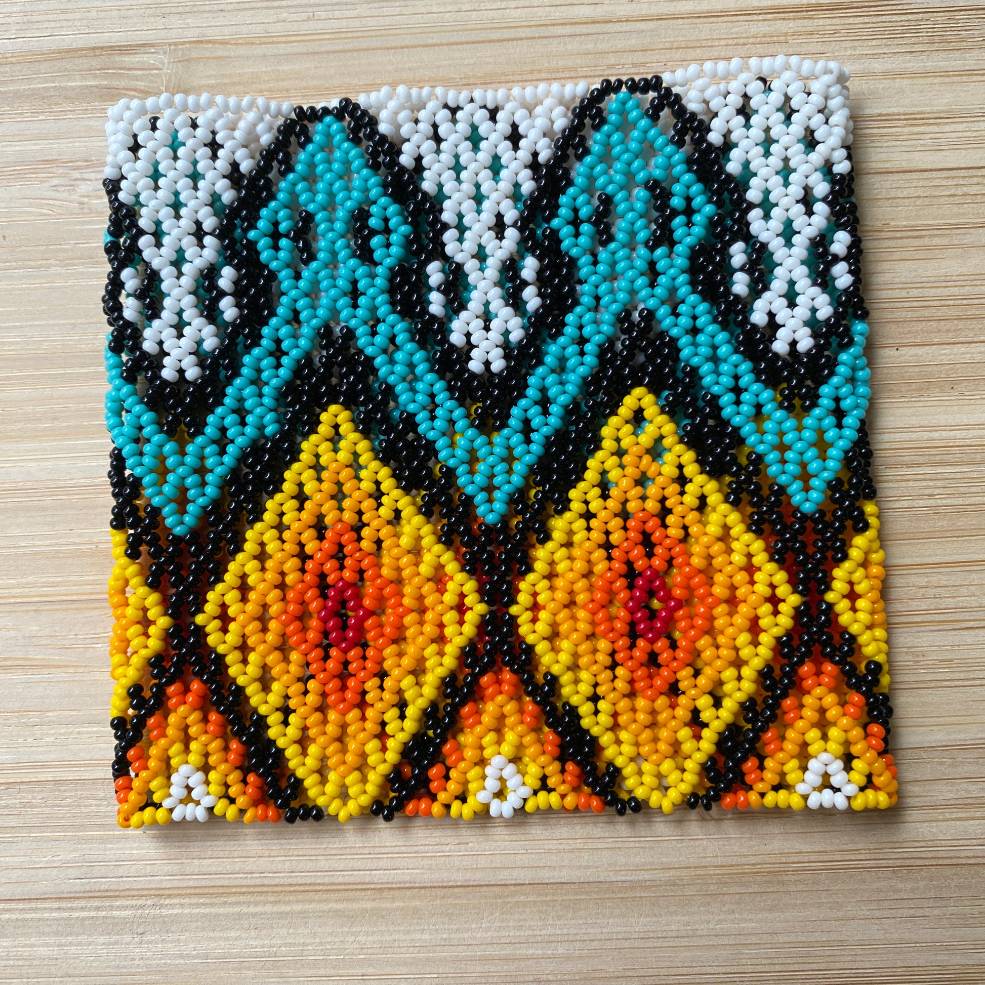 Chaque bracelet est minutieusement tissé à la main par des artisans locaux, qui utilisent des perles de verre colorées pour créer des motifs géométriques complexes.