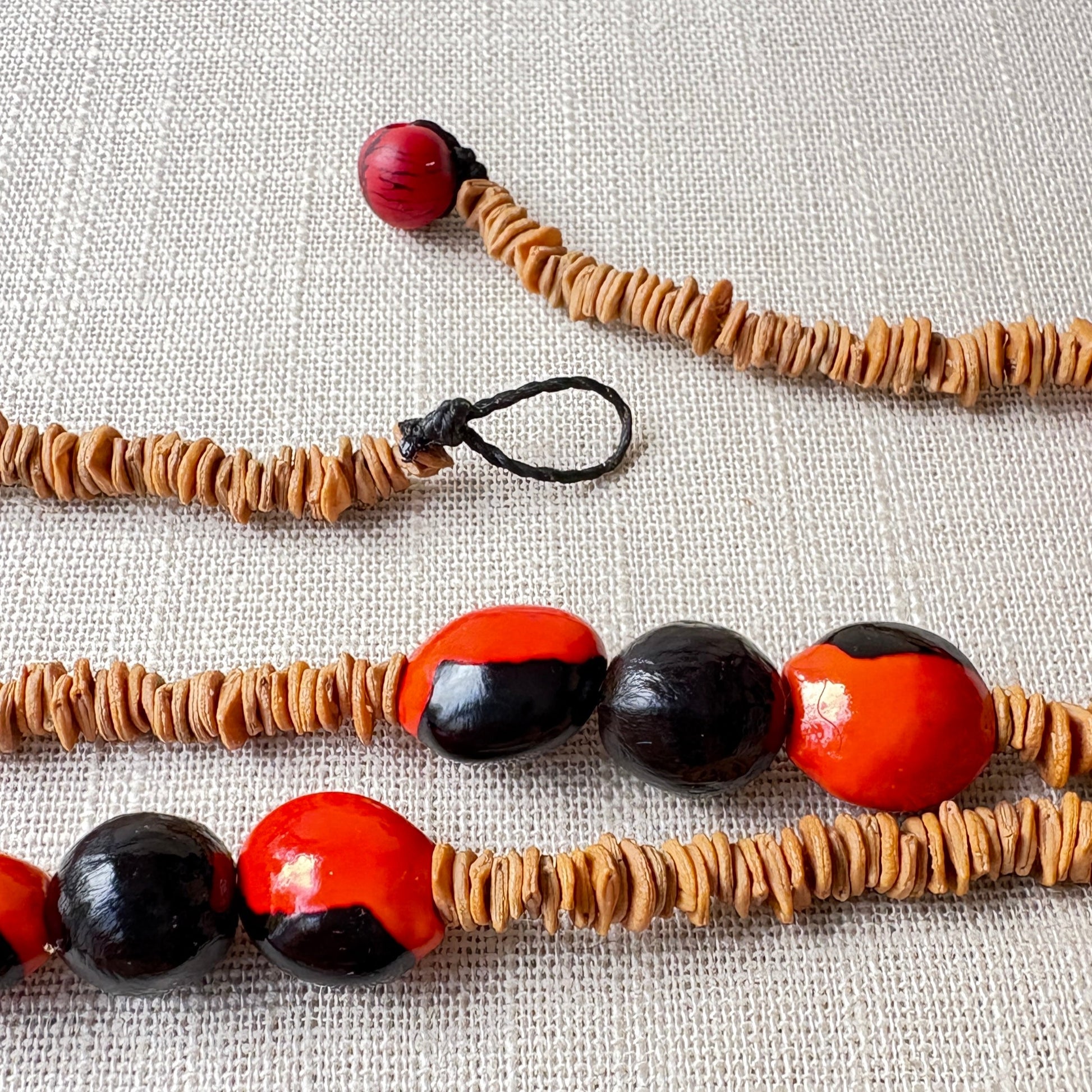 Matériaux : graines naturelles de morototo, tento et saboneteira