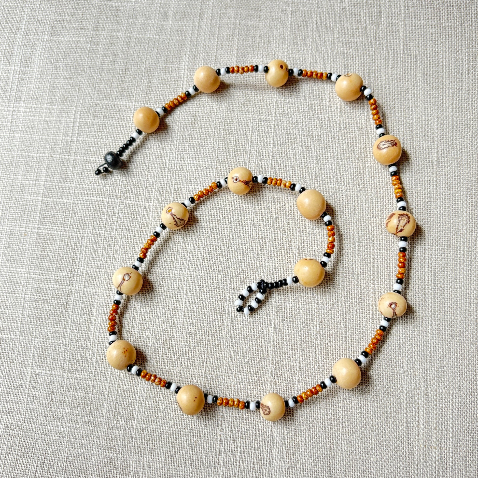 Matériaux : perles de verre colorées et graines naturelles d'açai